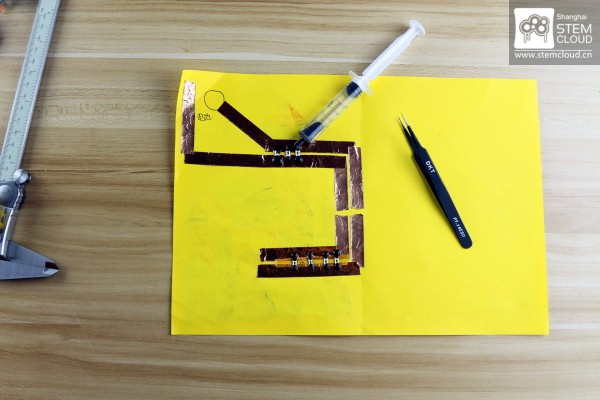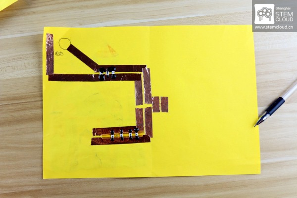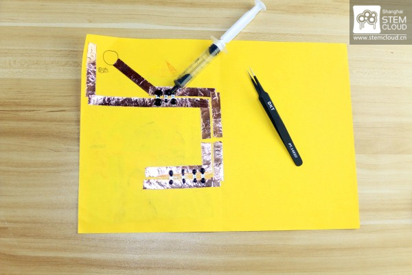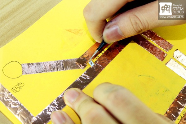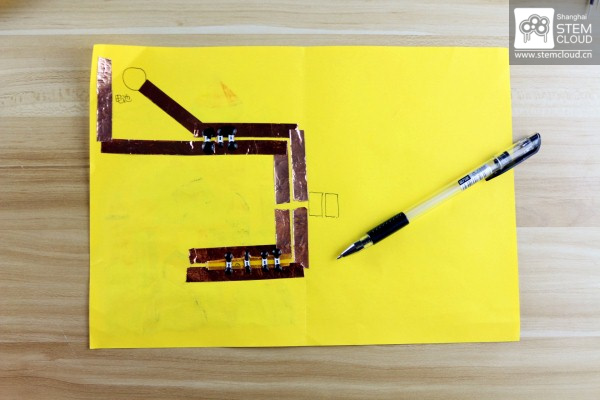 看~我们有神奇的导电墨水~涂在小灯与电路之间,他们就连通啦!