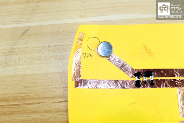 19.在预先确定的位置放上纽扣电池,注意对应上小灯的正负极哦~