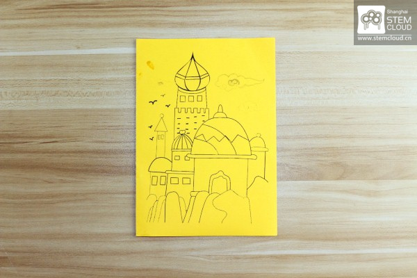 好啦~准备开工!首先我们要在彩纸上画出我们漂亮的图案~记得要先想好我们希望在图案的哪个地方亮起小灯哦~