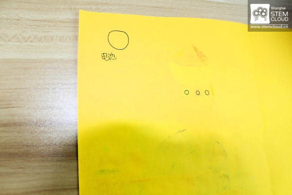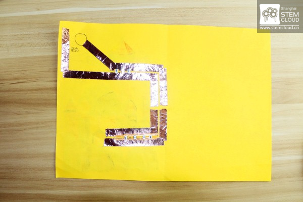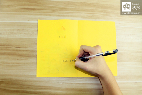 6.在彩纸背面规划需要点亮小灯的地方