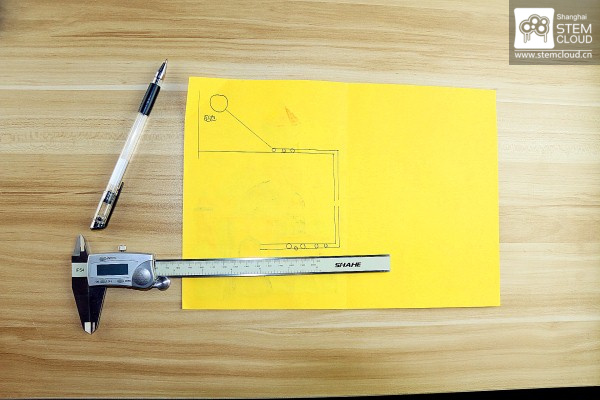 现在我们找到纸张的一个角落,给电池规划出下他的位置。